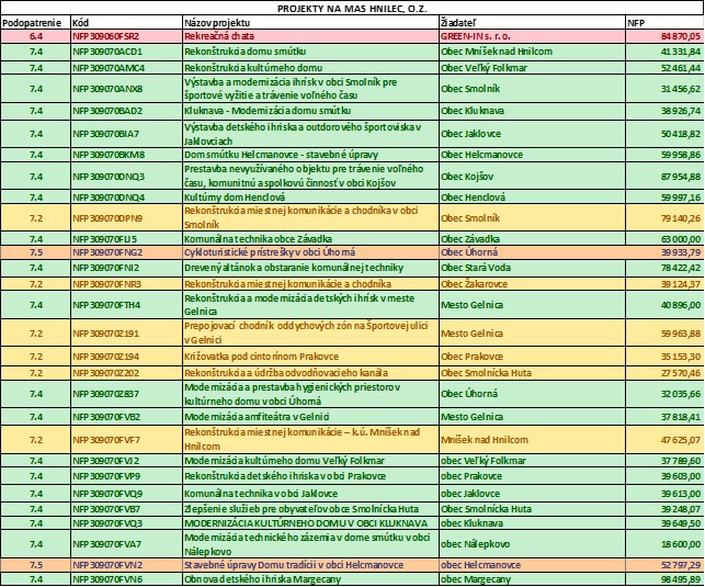 ZREALIZOVANÉ PROJEKTY PRV 2014-2022